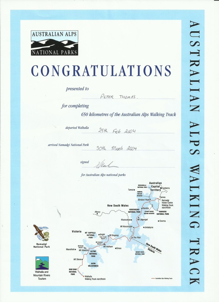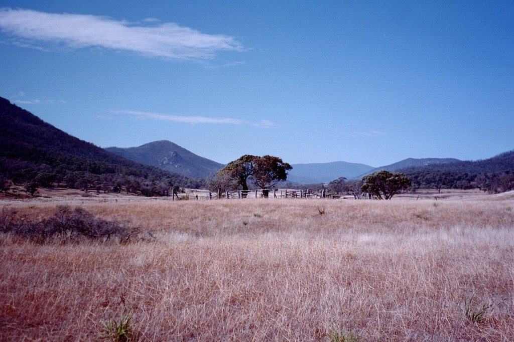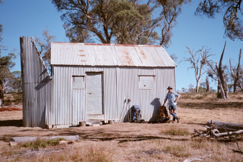 7 pm. We picked up our food cache at Kiandra and wandered all the way to Witses. We got here at about 4 pm. It was a nice walk along the Manga fire trail. It took us across the Wild Horse Plain and the Monaro Range Range down to Tantangarra Creek. I was going to ring home when we got to Kiandra but there were a couple of Telstra technicians working on the phone so we had to wait until they finished before I could phone. I got the answering machine. It was an easy walk into Kiandra. The grass had been cut all the way and we saw our first emu near Selwytn. Unfortunately, there is no water here. We went for a stroll for about 500 metres out on to the Blanket Plain but all the creeks we passed were dry. So Niv has taken our water containers back to Tantangarra Creek to fill them. It’s about a K and a half back to there. Unfortunately, the bursitis in my right knee has flared up big time. It’s very sore at the moment. I’m hoping that it will clear up. I think it’s because I spent a lot of time yesterday afternoon sitting cross legged shaving, having cups of tea and cooking dinner. I’m pretty sure that’s what has set it off as it’s not the pounding along the track because I’ve been doing that for weeks now. From here we’re going to Millers Hut tomorrow which is only 17 Ks away so, hopefully, we’ll be there for lunch. We also cross the Murrumbidgee and I doubt if there’s a shortage of water there. Then to Bill Jones Hut, Oldfields Hut and up to Murray’s Saddle and maybe even to Bimberi. That’ll depend on my knee. Then to Cotter House and the Orroral Valley. Hopefully we’ll be in Orroral on Monday night. We seem to be going very fast now but I think we’re going to slow down somewhat because of my knee.