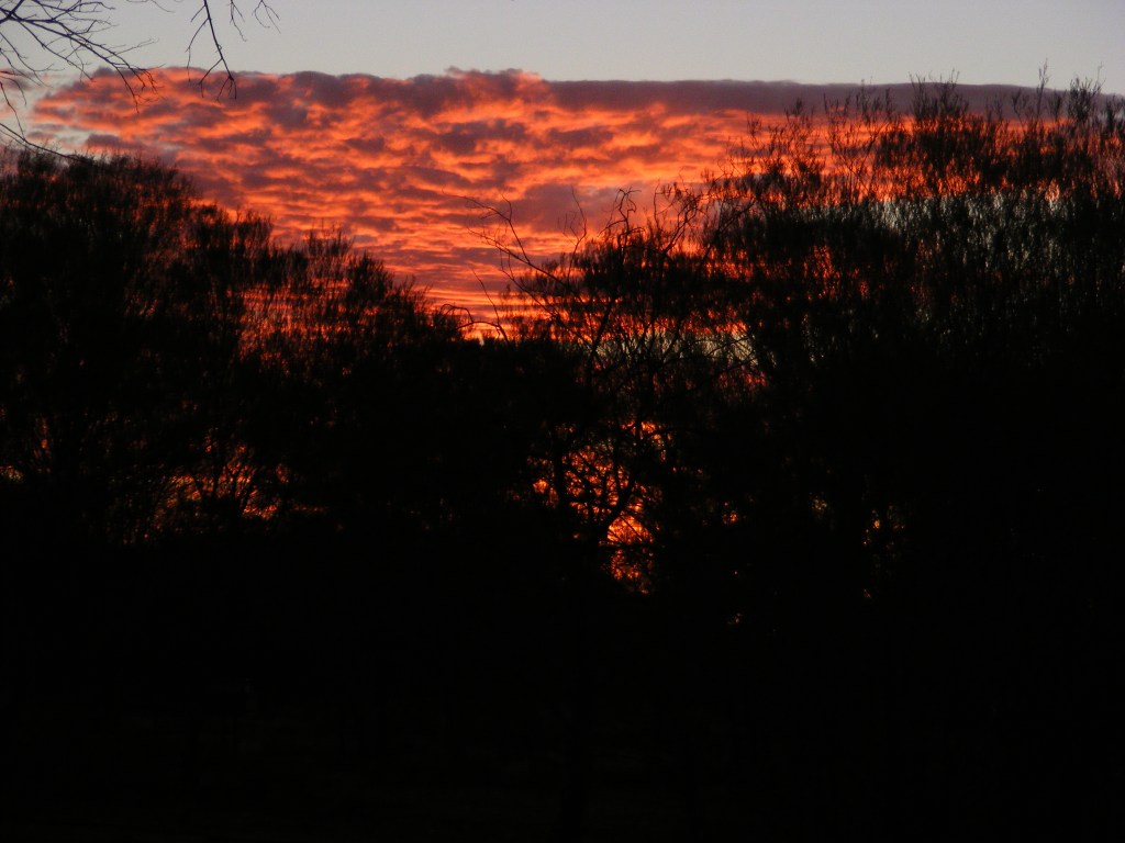 We waited for the promised glorious sunset and we weren’t disappointed. We must have sat at our vantage point and watched the changing colours for about an hour before we conceded that it was now too dark and cold to stay there any longer. A late dinner under a much brighter moon then an early bed followed as we had decided to get up at six o’clock again, pack up and breakfast watching the sunrise from Giles Lookout.