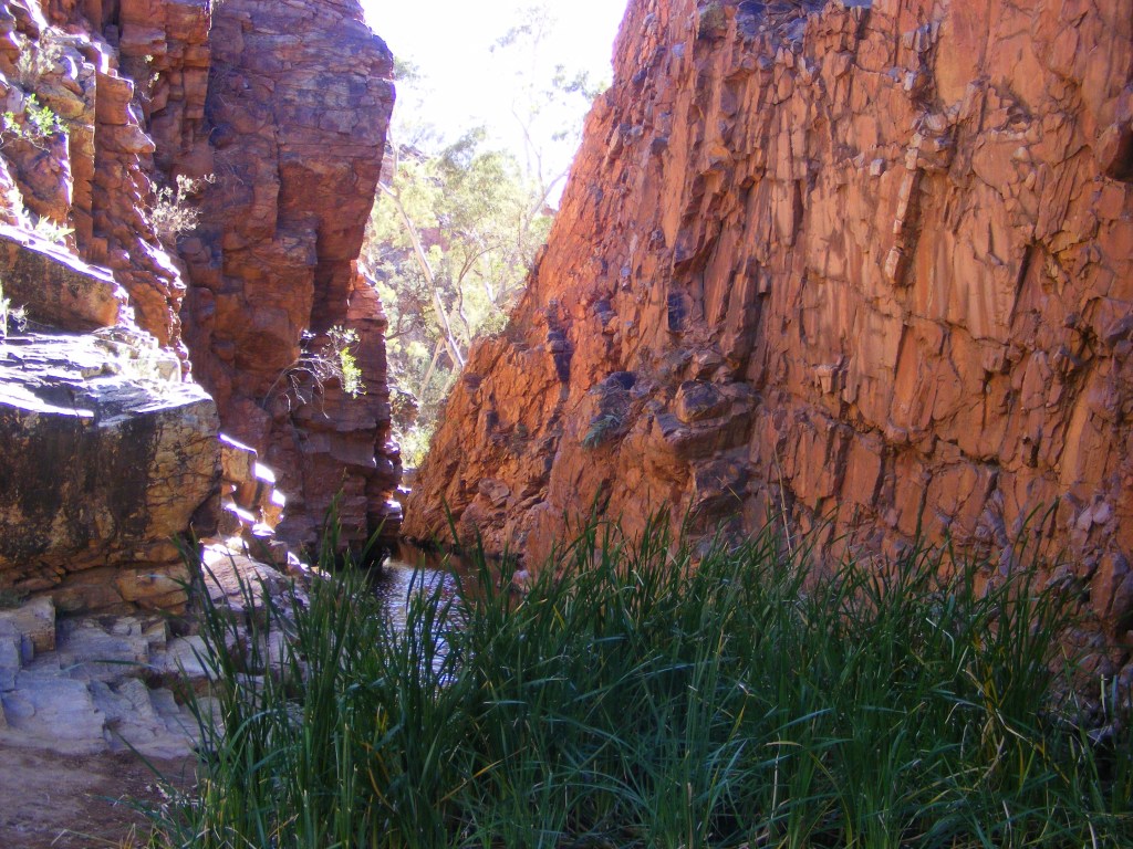 Bond Gap was beautiful with lots of water, green grass and water reeds growing everywhere. It was obviously well patronised by the native animals but there was no sign of neither brumbies nor scrub bulls. We took some photos and started the flat and easy eight kilometre trek to Simpsons Gap.