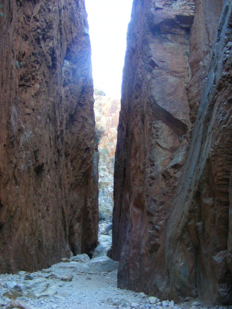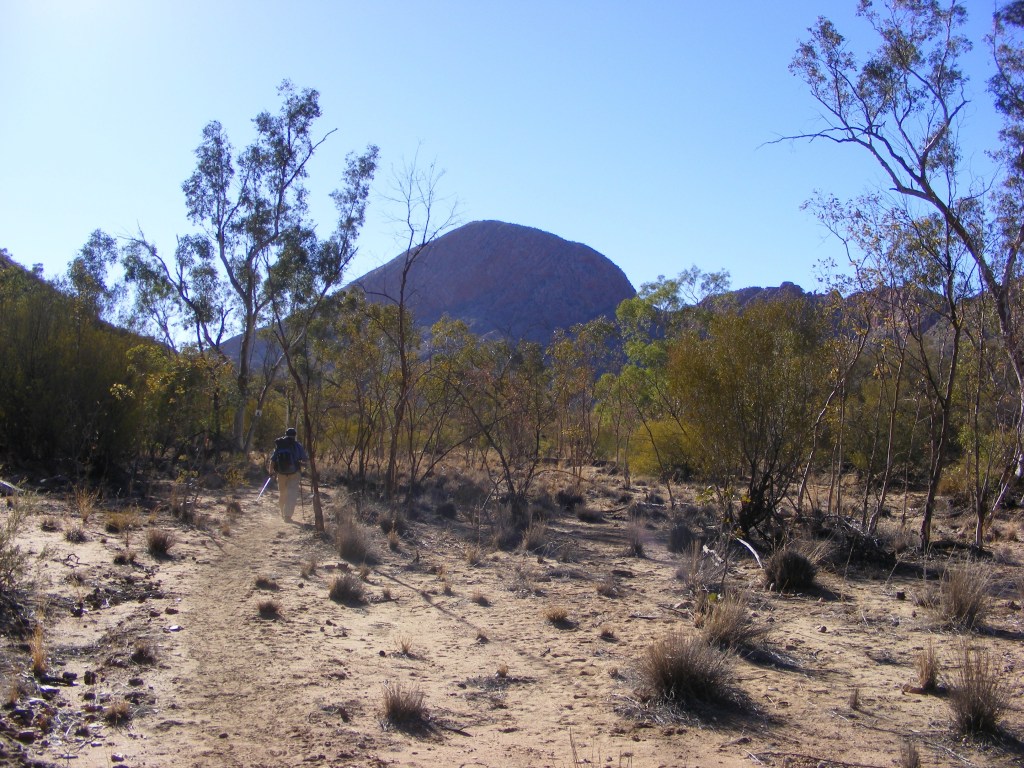 A couple of hundred more photos (“What did people do before digital?” I hear you ask. Well, they just took a chance that Aunt Mavis didn’t ruin the shot, basically.) and we were back at the track head where we shouldered our packs and headed off to follow the dry Ormiston Creek upstream before the track turned off and started meandering through the foothills of the Heavitree Range.