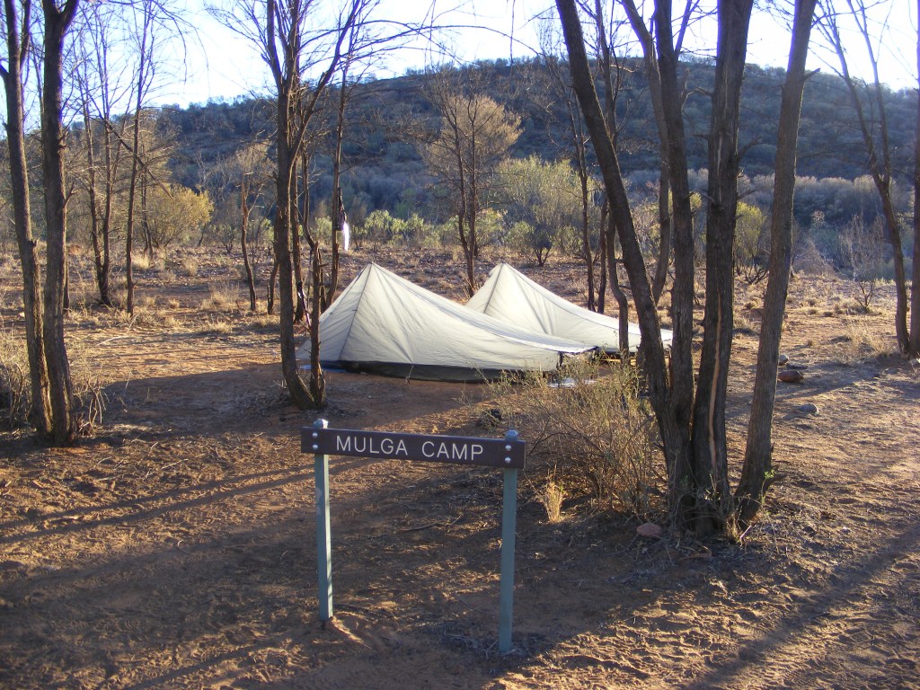 One thing Brian did tell us was that we should really consider spending the next night at Giles Lookout. There was no water but it had good campsites as well as splendid views back to Sonder and the sunsets/sunrises were well worth it. It sounded like a pretty good idea to us so we adjusted our plan accordingly. Then the conversation turned to our Tarp Tents. Quite a few of the party were checking them out and they nearly fell over when we told them they only weigh seven hundred grams. Brian’s party settled down to their lunch and we packed up and set off to explore the bazaars and fleshpots of Ormiston Gorge.