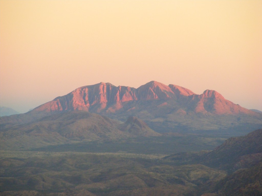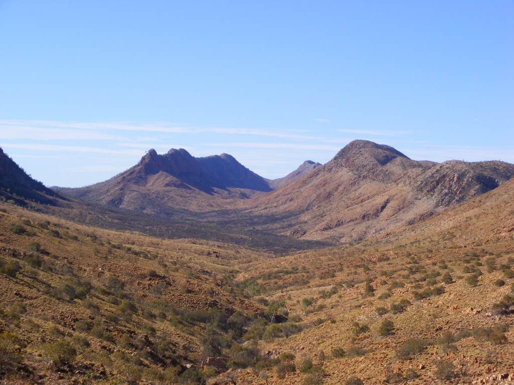 The MacDonnell Ranges are divided in two by the Heavitree Gap in Alice Springs where both the Stuart Highway and the Adelaide – Darwin railway cut through. The ranges to the east are known as the Eastern MacDonnell Ranges but the ones to the west are simply known by the locals as the West Macs. It is important to note that they are plural as they are made up of several distinct mountain ranges all over 1,000 metres and running east west like a series of waves heading from north to south. Some of the ridge lines actually do look like breaking waves. In the West Macs are the Kintore Range, the George Gill Range, the Gardiner Range, the Ehrenberg Range, the James Ranges (a plural range of its own), the Stuart Bluff Range, the Chalet Ridge, the Heavitree Range,