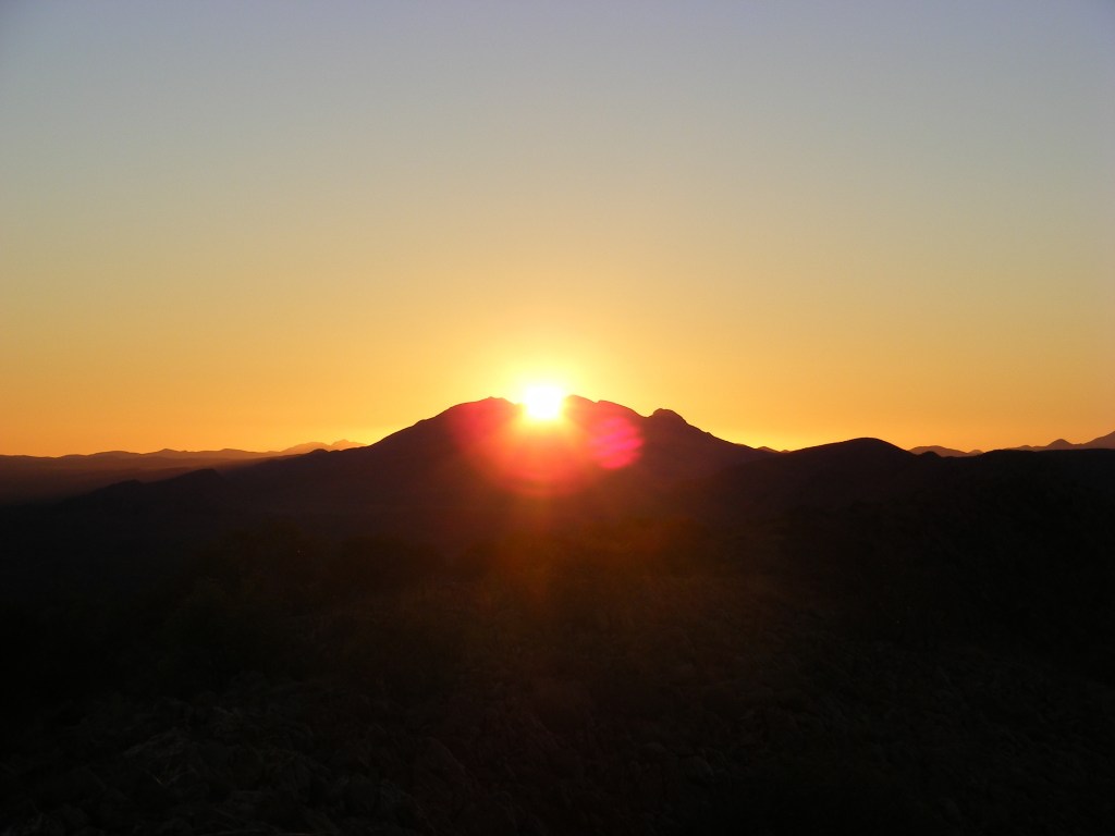 Just after dusk we heard voices coming down the trail from the east. They were a group of four girls who were hiking the Larapinta as their end of high school treat. They had started at Alice Springs Telegraph Station that morning. They didn’t bother putting up tents but just laid a tarp on the ground and their bags on top.