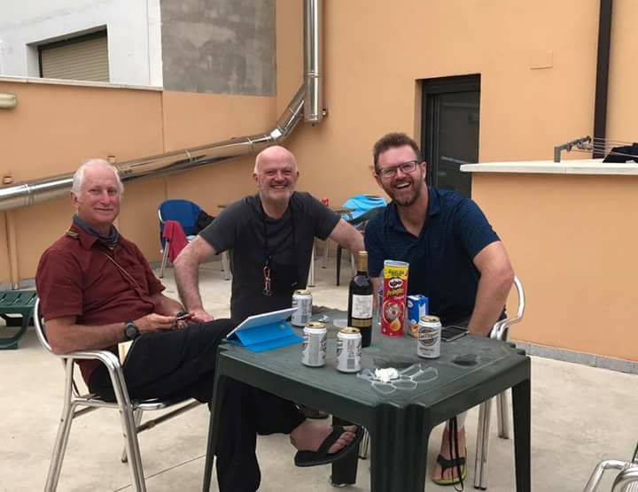 Day 10. 26Kms. Navarette- Ventosa (b/f – coffee, OJ and ham and omlette roll 😋) – Najera – Azofra. It takes a bit of getting used to setting out @ 0730 when it’s still dark but the walking is really just strolling along a Spanish rural footpath. We do some big Ks but we’re finished by early afternoon which leaves time for other pursuits. Speaking of which, there are hundreds of square kilometres of grape vines here which explains why quite good vino tinto is 3€ a bottle unless you really want to splurge and pay 4€. We had an interesting encounter when we walked in to Azofra. Azofra is a small village with a single road in and out, a plaza mayor, several bars, a mercado and a municipal albergue. As we walked in to town we stopped to say hello to a couple sitting on a doorstep. The woman said, “Oh, thank God, Australians. I haven’t heard an Australian accent for days.” Her name was Kirsty from Melbourne and her American friend was Mike. We introduced ourselves and Kirsty asked where we had walked from. It had been a long hot day and the heat was affecting us so Leo and I were both very foggy. I said that we weren’t sure and she asked us where we had had lunch. Leo said that we weren’t sure about that either. I think Kirsty thought we were having her on as she heatedly said, “You don’t know where you started from and you don’t know where you’ve been?” All I wanted was a shower, a bed somewhere and several cervezas so I said, “We don’t live in the past.” That cracked the ice. She became one of nuestra familia sendero muy querido, our much loved trail family.