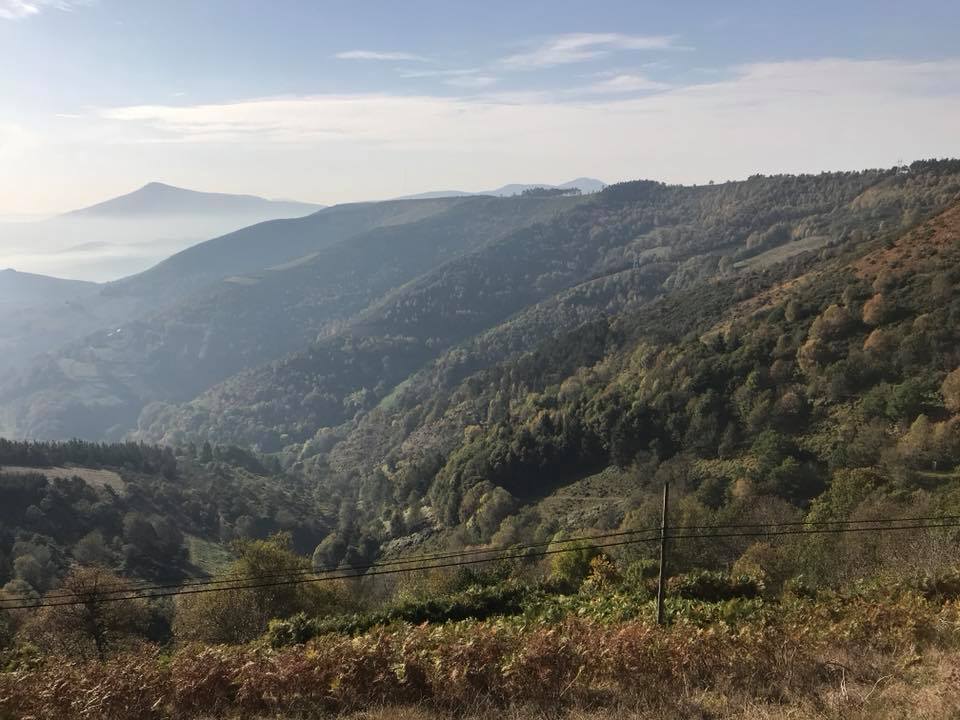 22kms across the range. Beautiful views spoiled by the smoke haze from a bushfire. The water bombing helicopters were busy yesterday and today. When you’re only traveling at 5kph it takes a while to get clear. Whilst we’re in no danger it makes you think about hard it would be to get off the mountain if you had to. O’Cebreiro at 1330m was a pretty town and obviously a tourist destination. Hopefully we peregrinos gave them a whiff of the Camino. From there we descended and climbed to the Alto San Roque at 1270m and then onto Alto do Poio at 1335m. Some really steep pinches to get here but some lovely flat(ish) sections as well. We opted for the Albergue del Puerto that is nothing to write home about. Tomorrow we’ll head to Samos and perhaps Sarriá by Sunday. So, lots of climbing today but it was really lovely along the ranges with everything taking on its autumn colours.