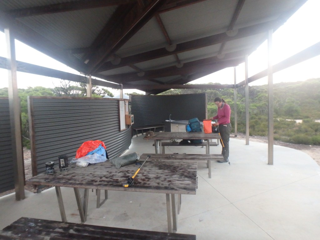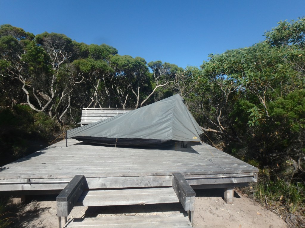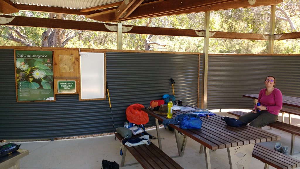 Campsites. As a final wrap up from Kylie and I’s walk I can’t speak highly enough of the campsites and the detail of each. They all had cooking shelters, water tanks, toilets and either sand pads or wooden platforms for setting up our tents on. Each shelter at the campsites: Cup Gum; Hakea; Bansia and; Tea Tree, had motifs in their design specific to their name. As a bonus, Kylie & I were the only ones on the trail so we could spread out and had our pick of campsites. 🙂