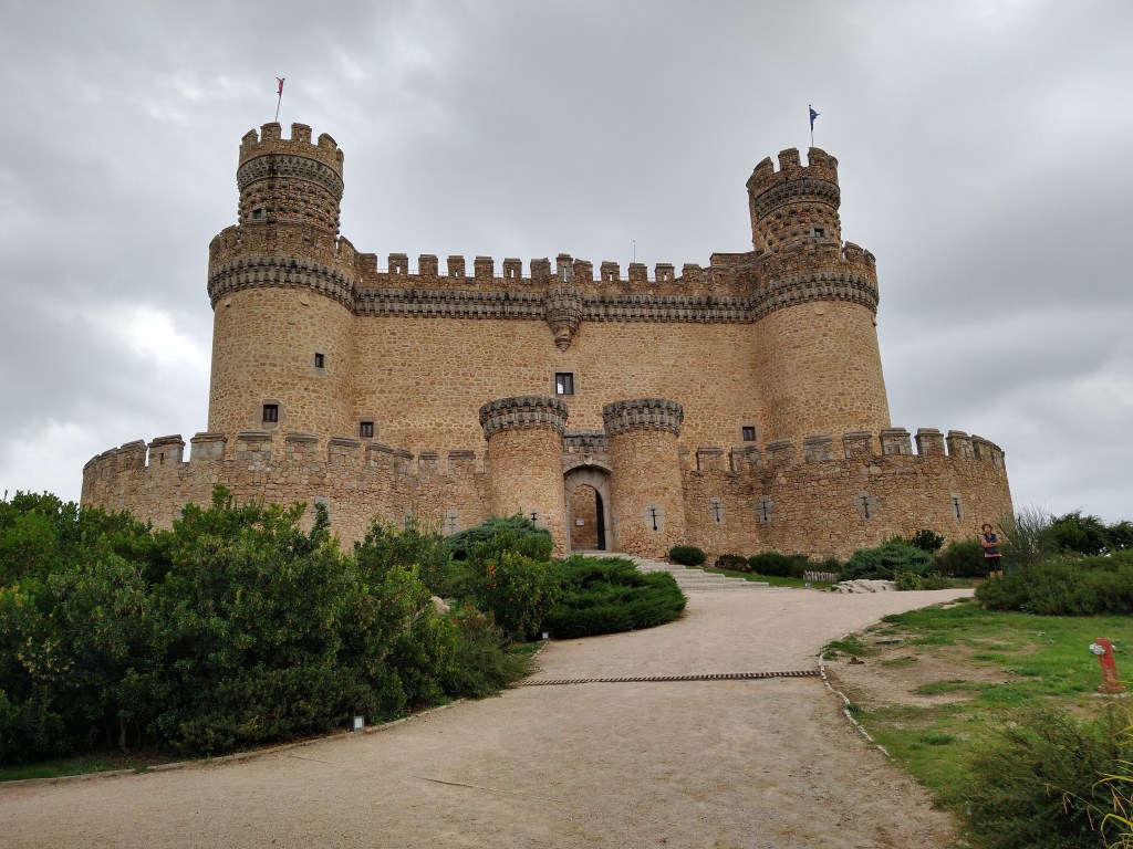 Las Flechas Amarilla. Day 2. Colmenar Viejo – Manzanares el Real. 15kms. We had a lovely morning’s stroll along an ancient droving road under a beautiful cool overcast sky. We started the climbing of el Sierras de Guadarrama. Manzanares has two claims to fame: the 15th century castle and excellent granite climbing. p.s. the picnic lunch was awesome and cheap @ 4 euros for all of us.