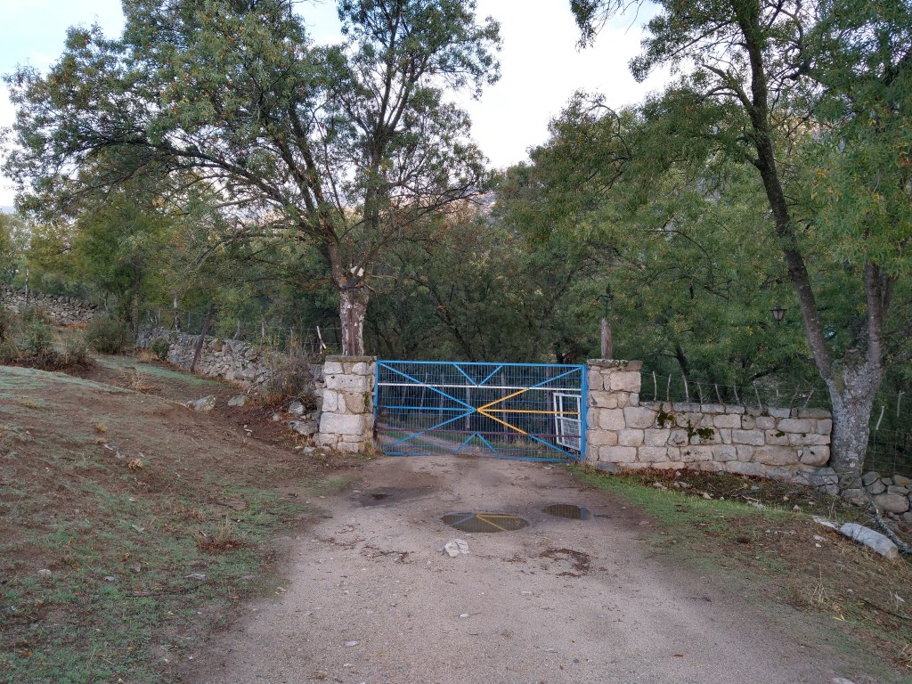Las Flechas Amarilla. Day 3. Manzanares el Real – Mataelpino – Navacerrada – Cercedilla. 24 kms. An early start in the dark along country lanes then in to a Regional Parque. Then the path started climbing el Sierras de Guadarrama. We had lunch in Navacerrada before a very steep climb in the rain till we dropped down via a forest track to Cercedilla.