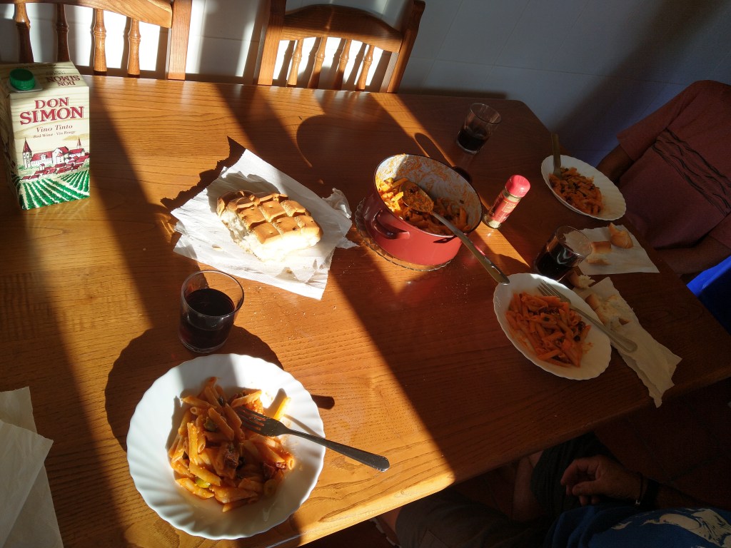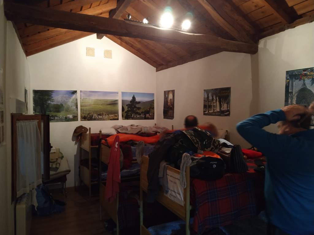 Las Flechas Amarilla. Day 4. 7 kms. We decided to have a rest day wandering around the world heritage city of Segovia. Then we pushed 3 kms further on to the Municipal Albergue at Zamarramala. Super weird. We got there about noon but it was shut. Debbie saw a couple of guys in the kitchen and asked them if she could use the toilet. They let her in and told her they were the cleaners. We sat on the porch until the Hospitalerio showed up and checked us in. We asked him about the others and he told us they were the cleaners but there was half a dozen of them which was overkill for an albergue and they didn’t seem to be doing any cleaning.