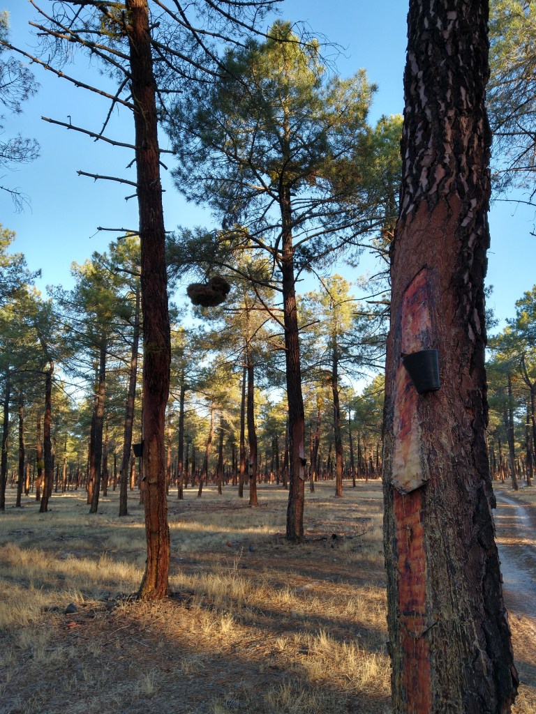 Las Flechas Amarilla. Day 6. Santa Maria la Real de Nieva – Coca. 23 kms. We had a lovely stroll today through huge forests of Spanish Firs which are tapped for their sap. It took most of today’s walk to get through them.