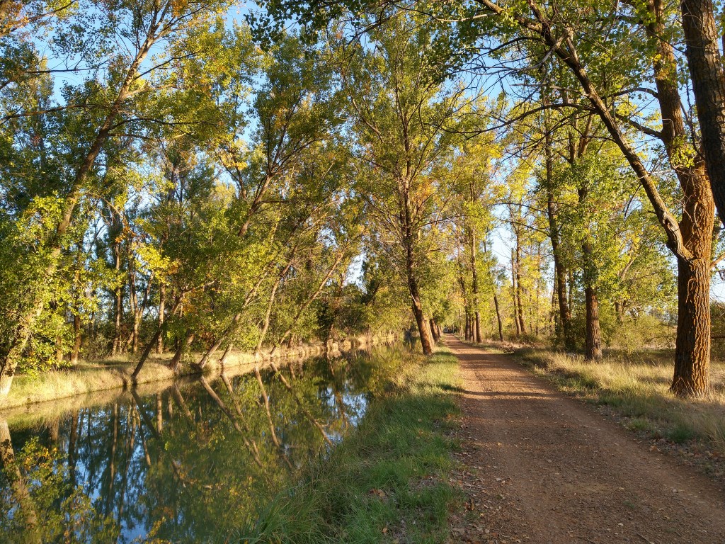 Las Flechas Amarilla. Day 12. Medina de Rioseco – Tamariz – Villalon de Campus. 29 kms. Another start in the dark which was a shame as the first 8 kms was along the lovely Canal Castilla. Then it was a long bitumen bash across the meseta to Cuenca for lunch. We then followed a rail trail for the final leg in to Villalon.