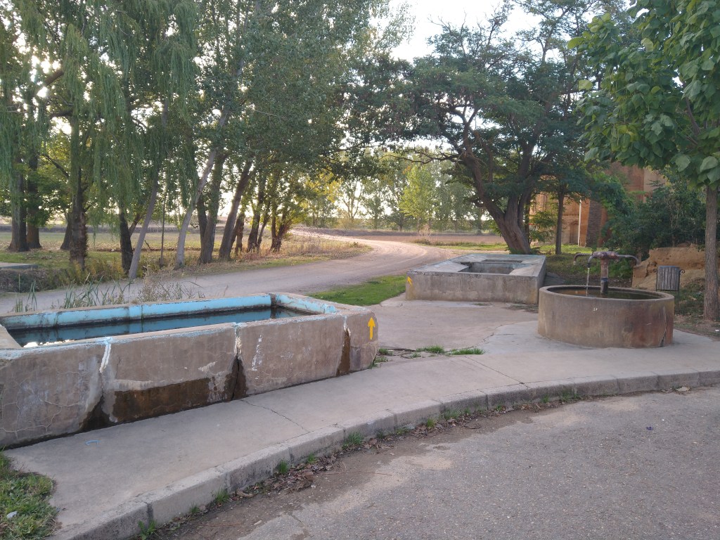 Las Flechas Amarilla. Day 14. Santervas de Campos – Grajal de Campus – Sahagun. 23 kms. Unfortunately, Debbie has injured her ankle badly and our hospitalerio gave both Debbie & Fred a lift in to Sahagun to have it checked by a Fisioterapeutas (physiotherapist) so I had a solo trek for the last leg of the GR124/El Camino de Madrid. I left our albergue at 8 am and was checked in to the hostel by noon. 23 kms in 4 hours. My camino fitness must be cutting in. It was a lovely stroll by a river for most of the way and the last day on the meseta. So, one down, two to go. 😀