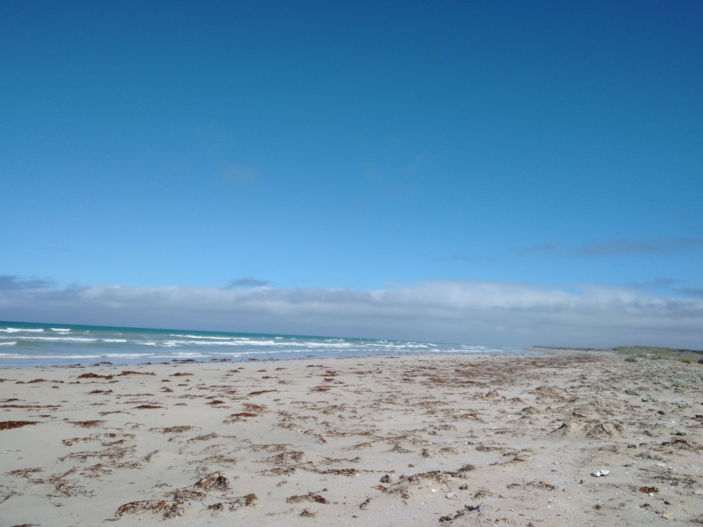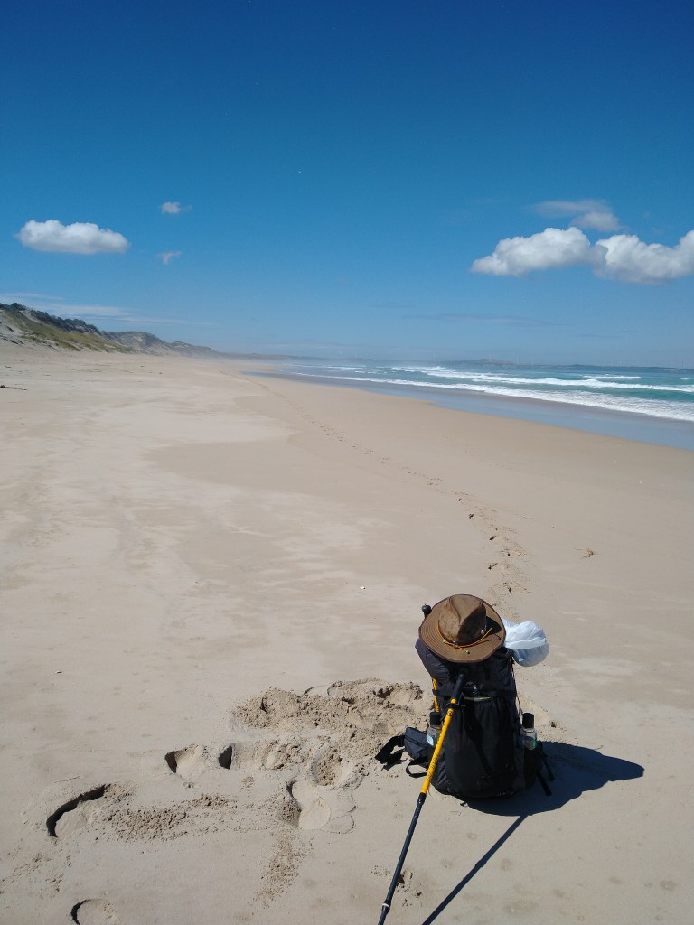 el Camino Australiano. Day 3. Bridgewater Lakes – Discovery Bay – Swan Lake. 22 Ckms. Discovery Bay is the meseta of this Camino. A lot of headspaces and a lot of hard work. It will take us 3 days to walk the beach to Nelson and we are already questioning it. It was a very hard walk, and everyone is hobbling. Lisa, Niven, and I did this ten years ago so you would think I’d know better.