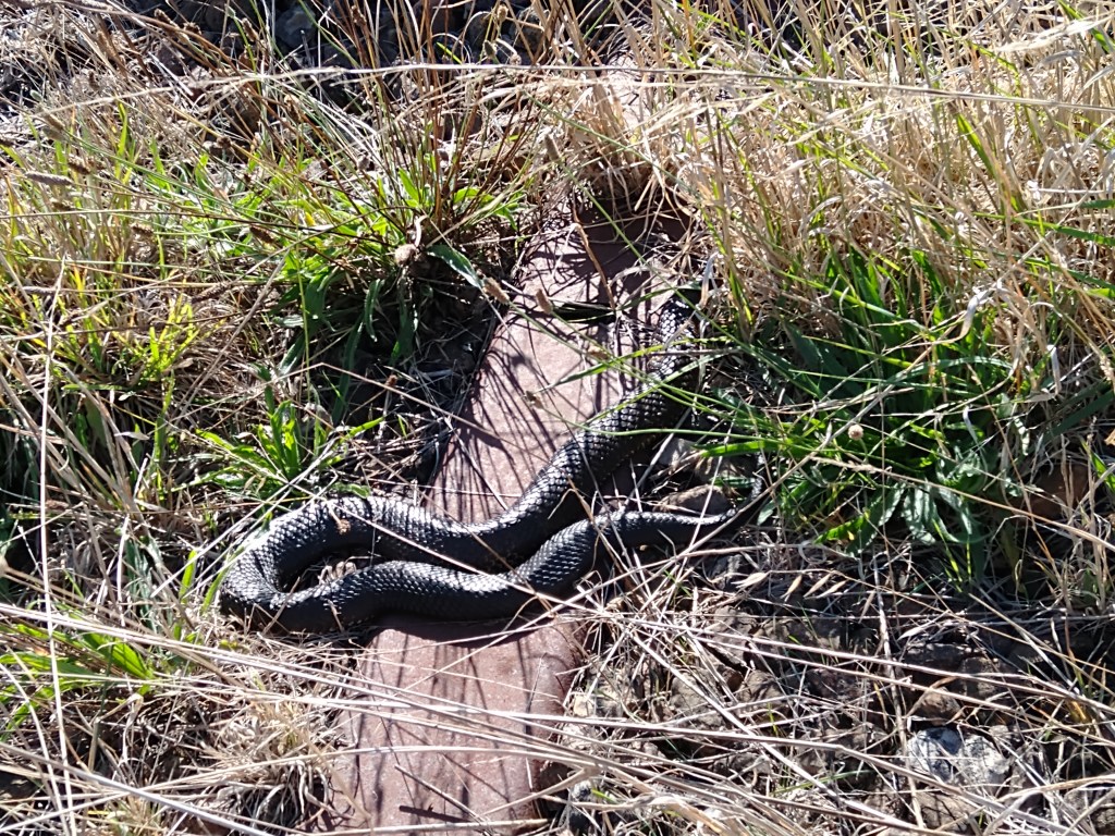el Camino Australiano. Day 11. Bush Haven – Kalangadoo. 21 Ckms. Our guide said to ramble along shady country roads, but Google Earth identified the abandoned Mount Gambier Penola rail line and since rail lines are flat and direct, we thought it would be better. Eight kilometres and five Black Tiger snakes later we decided that rambling along shady country roads would be more appealing.